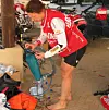 Malin fyller drikkesekken.