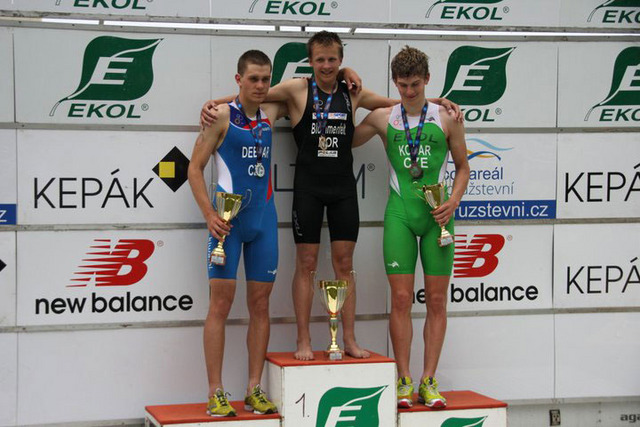 Kristian Blummenfelt (17)fra Bergen sørget i dag for Norges første seier i ett internasjonalt triathlon stevne når han vant europacup stevnet i Brno i Tsjekkia. Prestasjonen blir ikke mindre av at Kristian er første års junior mens alle hans argeste konkurrenter er 2 år eldre. Kristian kunne etter å ha vært med i teten fra første sekund heve armene og ta i mot hyllesten som vinner av løpet etter å ha tilbakelagt de 750 m svømming 20 km sykkel og 5 km løp på 1.00.54 i en tøff løype. Ett år yngre Jørgen Gundersen og Mikal Iden følgte flott opp med 15. og 21. plass i den sterke konkurransen med 60 av europas beste juniorutøvere.