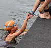 En hjelpende hånd:Litt hjelp til å komme seg på land og til å skifte om til løpingen.