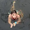 Brystsvømming: Emma i 11-årsklassen har full kontroll på teknikken og har lukket munnen for inntak av litt ferskvann underveis.