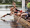 Siste pulje: Her er det 11- og 12-åringer som tar fatt på svømmedelen. Nå er distansen 100 meter, dvs. 50 meter til vending og 50 meter tilbake til utgangspunktet.