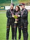 På damesiden leverte de to tidligere svømmerne Kari Flottorp og Mette Pettersen Moe gode svømmetider, og var hhv nr 3 og 5 opp av vannet. Mette hente raskt inn Kari og ledet hele veien frem til mål. Brita Cecile Mustad fra Langesund presset hardt på løpingen og hentet igjen forspranget til Kari som til slutt endte på en 3. plass rett bak Brita. Vinnertiden ble 2:12:58. Sammen med Marthe Eikre Telle vant Østmarka med Kai og Mette Lag gull for beste klubb.