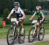 Markus Mowe Martinsen fra Nesodden og Alexander Høvik fra Halden fightet om førsteplassen i klasse 12-14 år. Markus i er i tet knappe to km før mål, og holdt unna for Alexander inn mot mål og vant med to sekunder. (Foto: Kjell Vigestad)