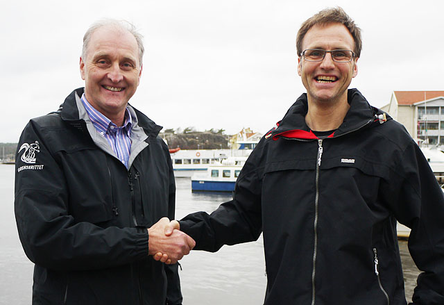 Daglig leder i Grenserittet Thor Fagereng (til venstre) ønsker Kent Hansson velkommen i staben.