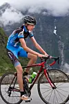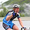 Frank Hana frå Førde CK er tydelegvis glad for å ha teke turen over Gaularfjellet. Det var litt regn rett før start, men ryttarane hadde fine forhold, overskya og vindstille under løpet.