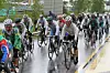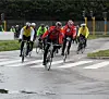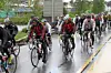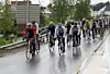 Regn og malte forgjengerfelt kan være skummelt på smale dekk, men vi så ingen uhell i Elverum. Etter hvert så tørket det opp slik at det var vinden og temperaturen som ble de største værmessige utfordringene. Her er det teten i pulje 6 med bla. Elverum-rytteren Ivar Richard Larsen (i gult til høyre) som er forsiktige i innkjøringen til Jernbanegata.