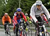 Hedmark Terrengsykkels røde og svarte ryttere i farta også på landevegen dagen etter dobbelt-triumfen i Finnskogkureren ved Steffan Hartz Repshus (til venstre) og Kjell Arild Lierhagen. Til høyre ses også Håkon Marius Guldhaug (med hvitt overtrekk).