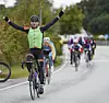 OL-deltaker Emilie Moberg (bildet) hang med gutta helt til mål i Femsjøen Rundt i Halden. Kjæresten, Sondre Sørtveit, vant det 110 km lange rittet.