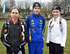 Det var temmelig kjølig før start med 6-7 grader og en sur vind. Men Sharon Broadwell (til venstre), Jarle Risa og Margrehte Løgavlen var likevel fulle av pågangsmot og gjorde seg klar for den lange løpeturen til Paris. (Foto: Runar Gilberg)
