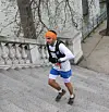 Også den mer urbane delen av løypa byr på utfordringer - her i form av trapper. I bakgrunnen skimter vi elva Seinen som snor seg gjennom Paris og som løpet følger mot slutten. Vincent Vient ble nummer fire i den lengste løypa, og han var en av de få som slapp unna regnet som begynte drøye 6 timer etter start. (Foto: Lars Gilberg)